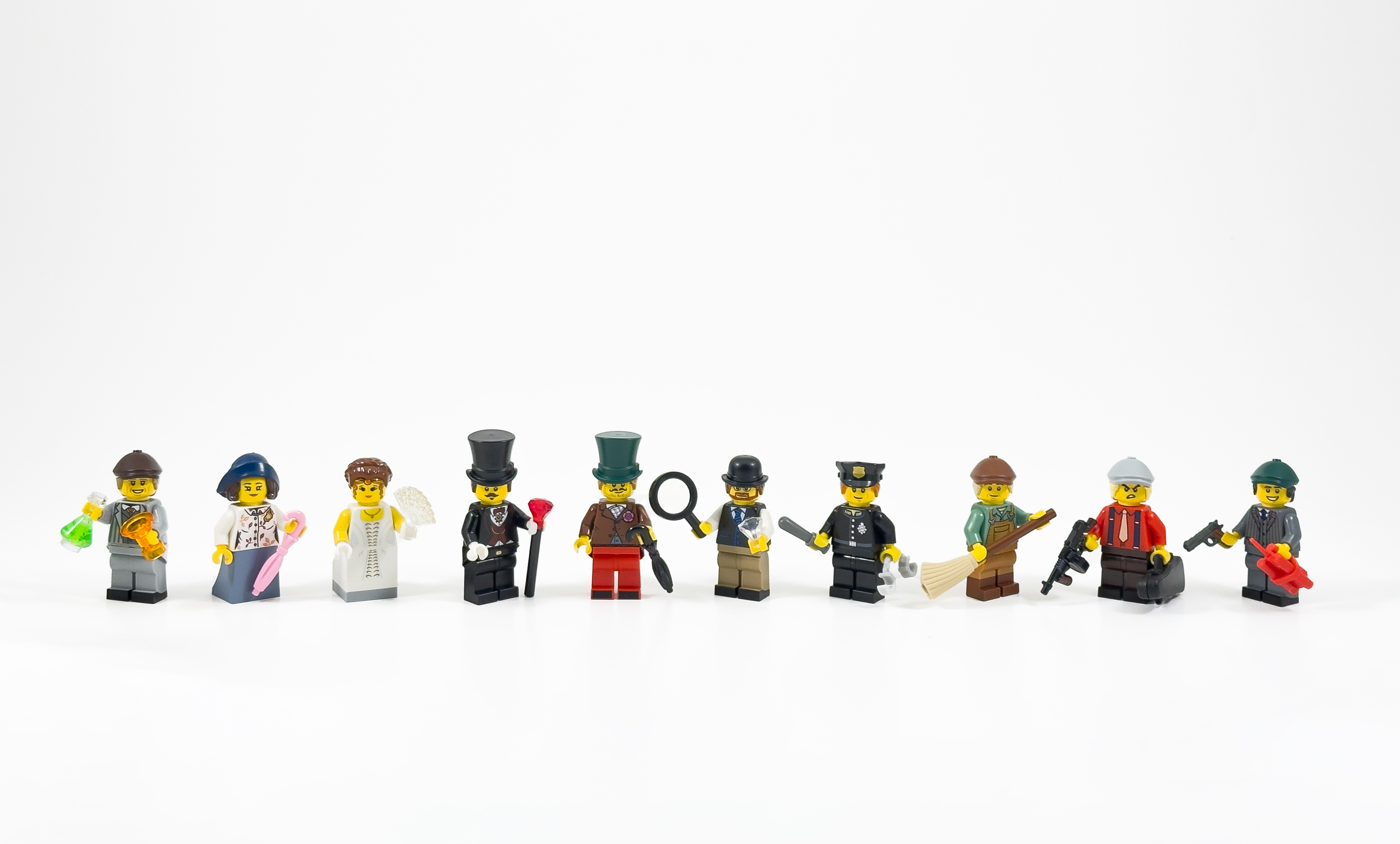 This is a series of 10 figures created for an upcoming Series 5 - 1920s Prohibition release for Rocky Mountain Minifigs. The series is comprised of figures representing all walks of life from the 1920s, including the aristocracy, criminal underground, suffragette movement, speakeasy lifestyle, and ordinary townsfolk. All of the figures feature hair, many of them cut down from full hair pieces to fit under hat elements.
