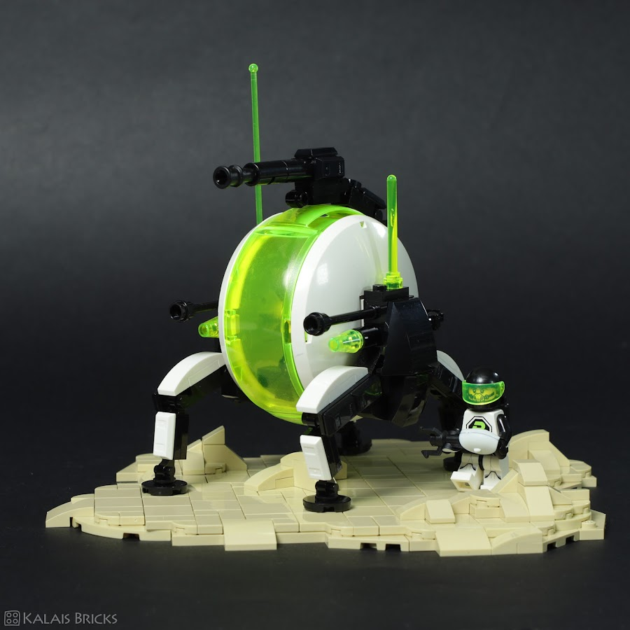 Blacktron mech built based on a round container from the LEGO X-Pod series of sets.